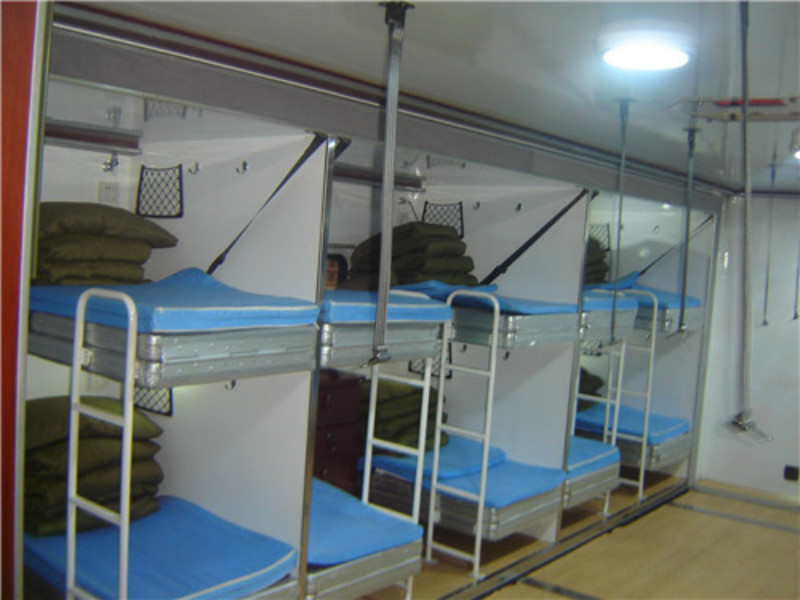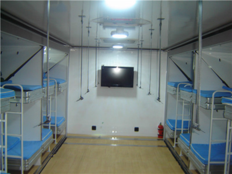 3)殼體內(nèi)部每一個(gè)宿舍床配置了LED軟性閱讀燈、置物網(wǎng)兜、插座開關(guān)