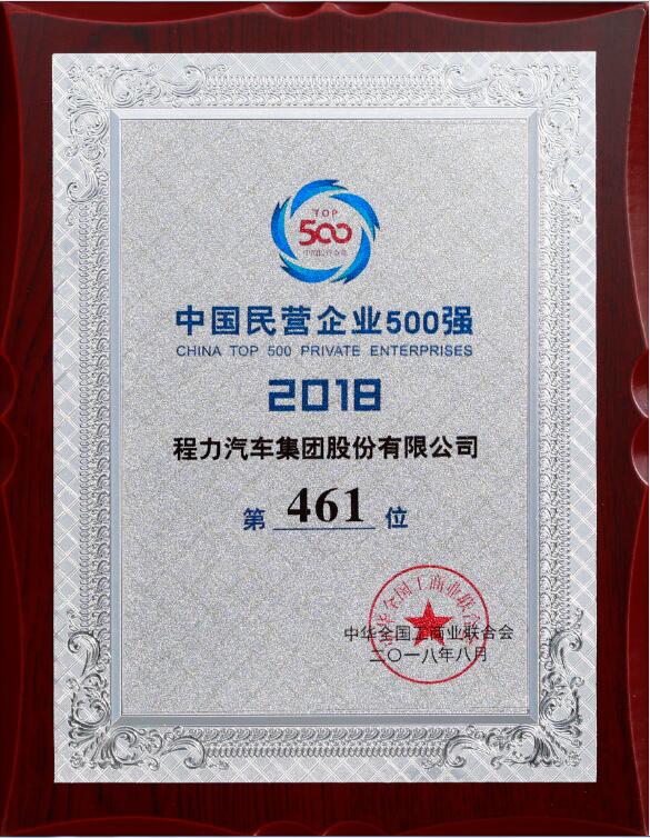 20182018年程力集團(tuán)位于中國民營企業(yè)500強(qiáng)公司第461位。