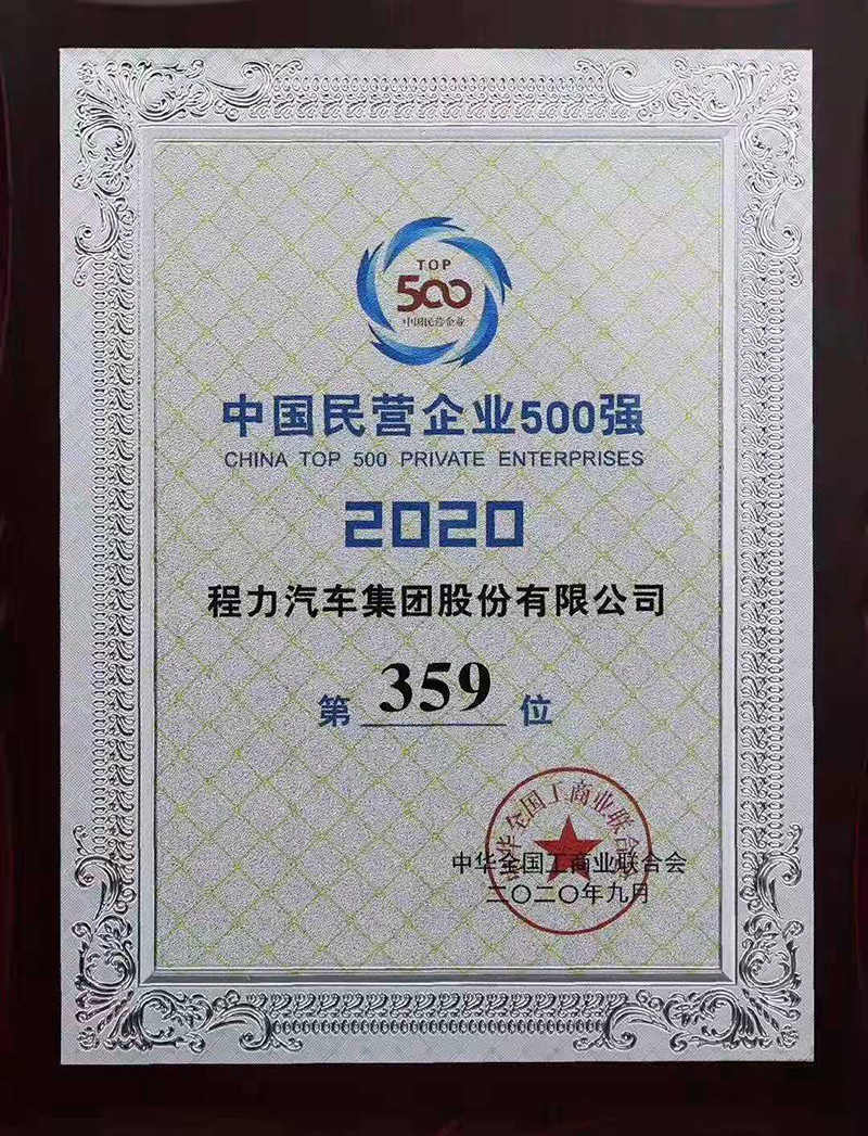 20202020年程力集團(tuán)位于中國民營企業(yè)500強(qiáng)公司第359位。