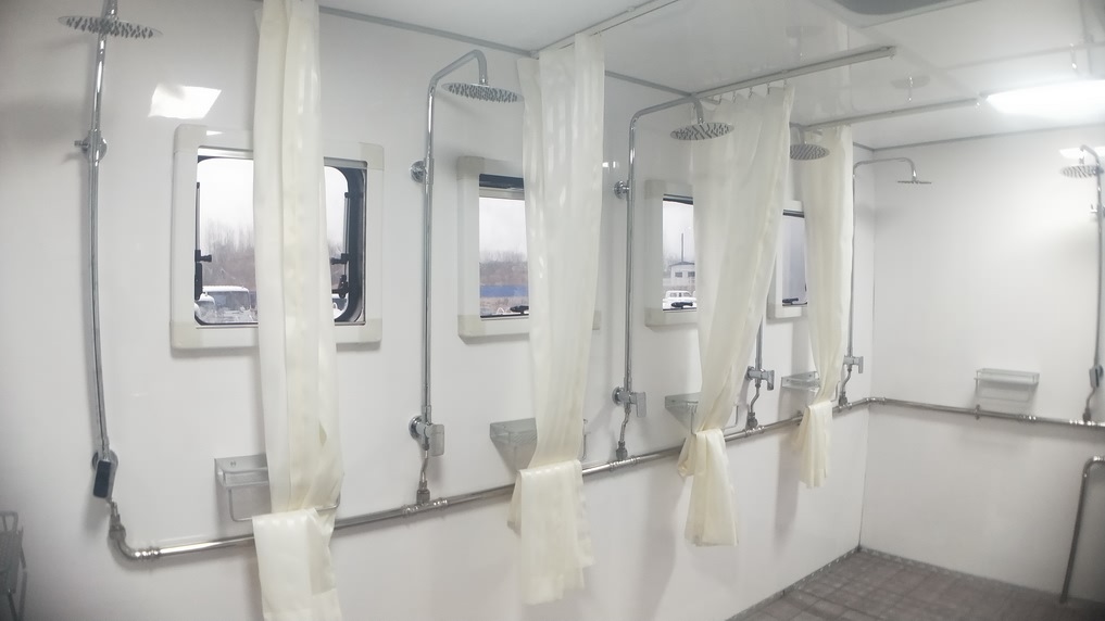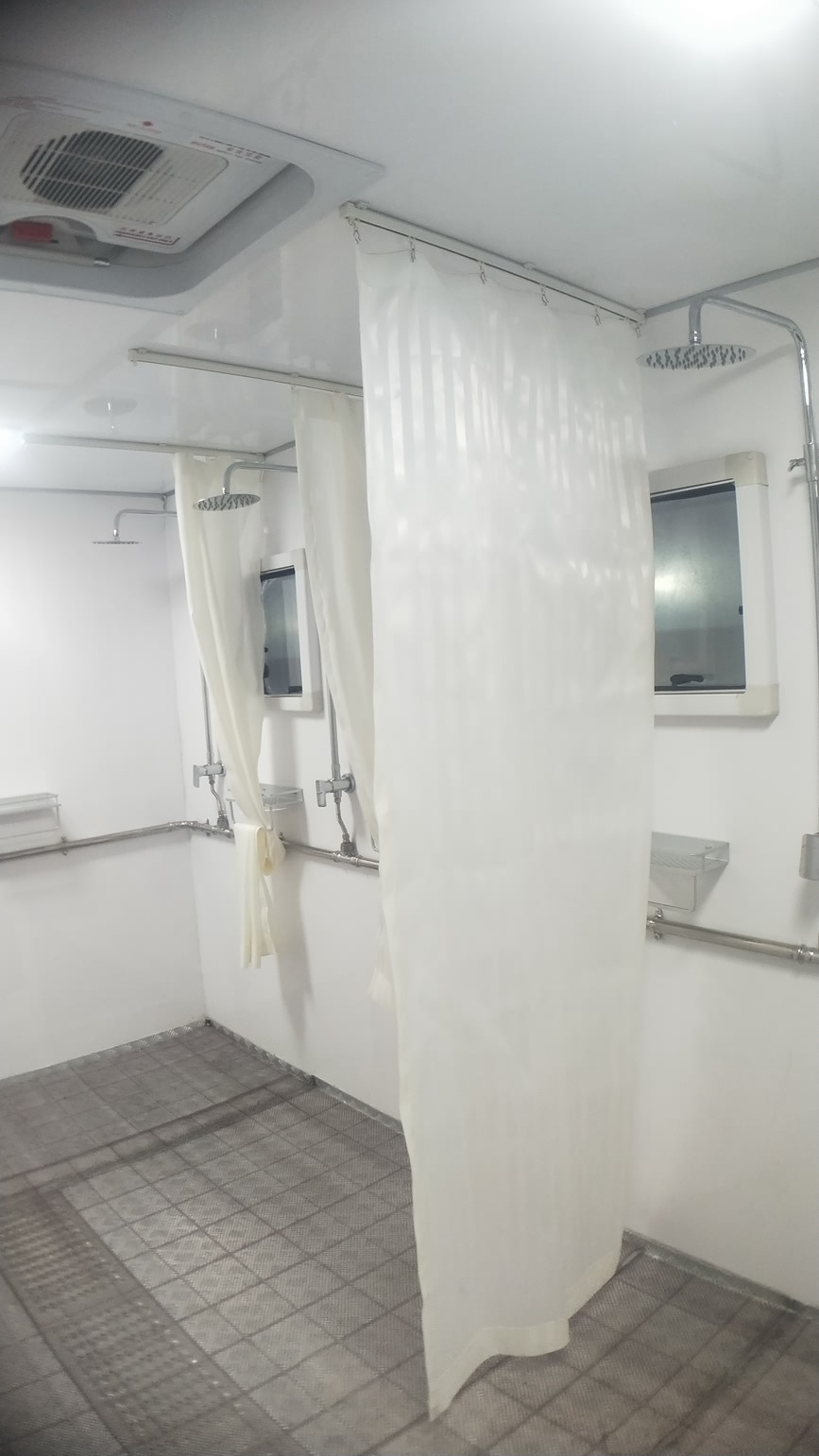 (3)車內配制不銹鋼水箱,可汲取符合 時飲用水標準的地表水,經(jīng)水質凈化后,保證 洗浴需要,也可直接使用市政用水;