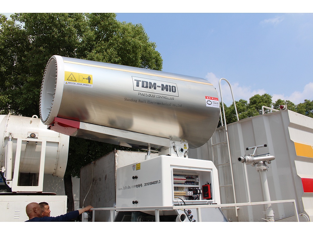 2、霧炮機噴射的水霧能對懸浮在空氣中的粉塵顆粒進行有效地吸附,使粉塵受重力作用沉降,從而達到抑塵作用。