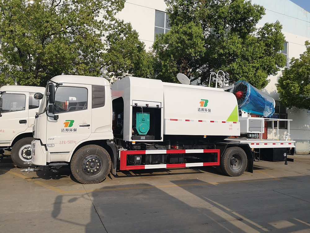 2、霧炮機(jī)噴射的水霧能對(duì)懸浮在空氣中的粉塵顆粒進(jìn)行有效地吸附,使粉塵受重力作用沉降,從而達(dá)到抑塵作用。