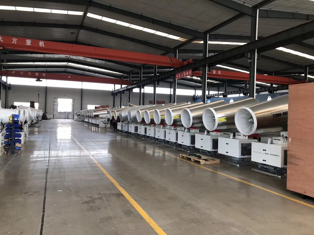 TDM型霧炮機(jī)主要有:高壓風(fēng)機(jī)、噴頭、水泵、配電箱、遙控接收器、回轉(zhuǎn)系統(tǒng)、升降系統(tǒng)、 底座等組成。噴霧機(jī)它的工作原理是利用了伯努利原理,即同**質(zhì)里,流速大,壓強(qiáng)小;流速小,壓強(qiáng)大。流體會自動從高壓流向低壓。在通過三叉管時,低速流動的水流向高速的流動的空氣。水被高速空氣撕成一小滴一小滴,這些小水滴噴出來后就成了霧。