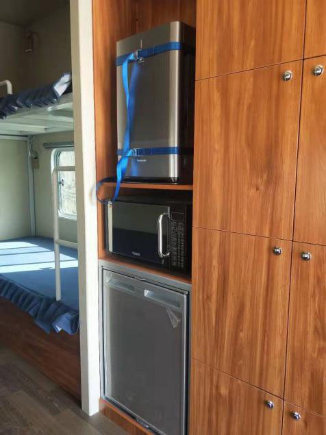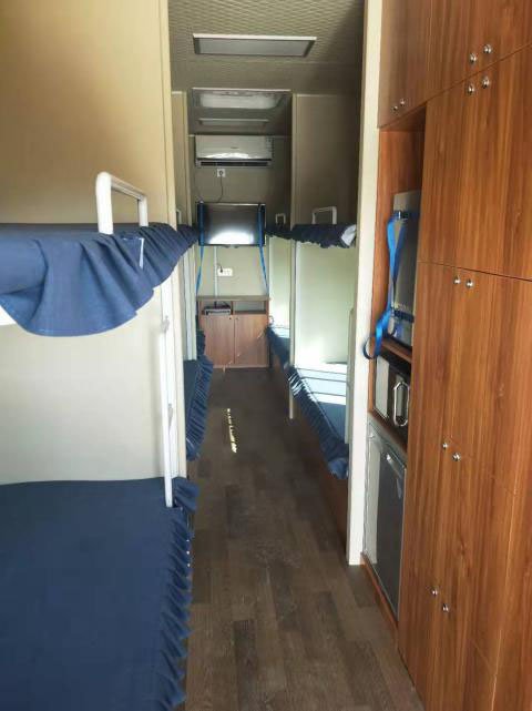 宿營車主要由東風二類汽車底盤、宿營方艙、宿營設(shè)施,空氣調(diào)節(jié)系統(tǒng)、淋浴系統(tǒng)、水路系統(tǒng)、電氣系統(tǒng)等組成。能夠滿足 8-12 人的住宿。具有舒適的就寢環(huán)境及齊全 的衛(wèi)生設(shè)施。車輛的功能介紹 車輛改裝設(shè)計:整車改裝設(shè)計符合國家對汽車設(shè)計改裝的相關(guān)要求;在保證運載工具 行駛安全的前提下,充分利用汽車底盤的有效載荷及底盤尺寸;能滿足車載設(shè)備安 裝、運行和人員工作、生活需要。整車機動靈活、可靠性高、環(huán)境適應(yīng)性好,性價比高。能夠滿足 8-12 人的住宿,淋浴、洗漱、閱讀,空間利用率高。
