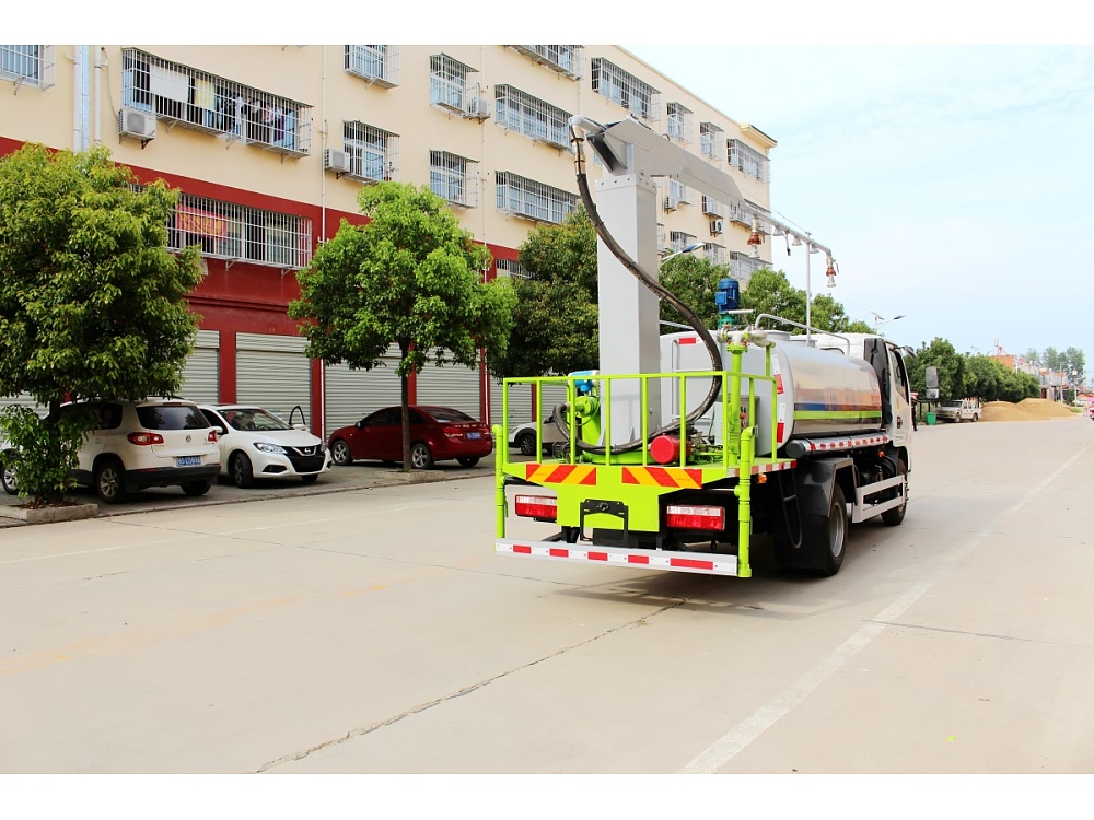 東風(fēng)小多利卡抑塵固化劑噴灑車上裝配置:罐體為5立方圓形罐,罐體內(nèi)部做防腐,帶加熱功能,前沖、后灑、側(cè)噴、高炮,抑塵噴灑桿(帶旋轉(zhuǎn)伸縮功能)。東風(fēng)小多利卡抑塵固化劑噴灑車噴灑桿離地3.5-5米 ,后部平臺(tái)帶8KW副發(fā)電機(jī)組,罐體內(nèi)部加兩個(gè)1.5KW電動(dòng)馬達(dá)(帶攪拌功能)罐體噴漆上白下藍(lán),平臺(tái)和噴灑桿藍(lán)色。遙控操作噴灑桿上下左右旋轉(zhuǎn),國內(nèi)知名品牌回轉(zhuǎn)支撐,大品牌油缸。