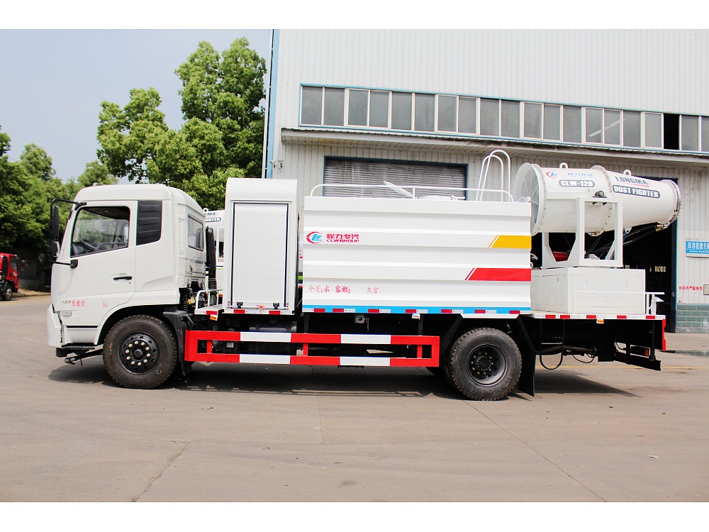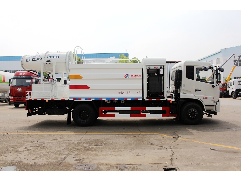 東風(fēng)天錦霧炮車廣泛應(yīng)用于市政環(huán)衛(wèi)及各類工礦企業(yè)噴霧降塵、綠化、消毒殺菌等用途,該車具有灑水車的全部功能,東風(fēng)天錦霧炮車罐體容積11.3立方,配備的噴霧機(jī)可選配50-100米規(guī)格,車輛型號(hào)CLW5182TDYD5,底盤使用東風(fēng)原廠底盤生產(chǎn),國(guó)五排放標(biāo)準(zhǔn),發(fā)動(dòng)機(jī)康機(jī)180馬力。