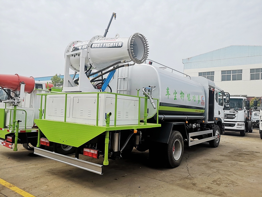 東風(fēng)多利卡D9霧炮車廣泛應(yīng)用于市政環(huán)衛(wèi)及各類工礦企業(yè)噴霧降塵、綠化、消毒殺菌等用途,該車具有灑水車的全部功能,東風(fēng)多利卡D9霧炮車罐體容積10立方,配備的噴霧機(jī)可選配50-100米規(guī)格,車輛型號(hào)CLW5182TDY6,底盤(pán)使用東風(fēng)原廠底盤(pán)生產(chǎn),國(guó)六排放標(biāo)準(zhǔn),發(fā)動(dòng)機(jī)康機(jī)210/玉柴200馬力。